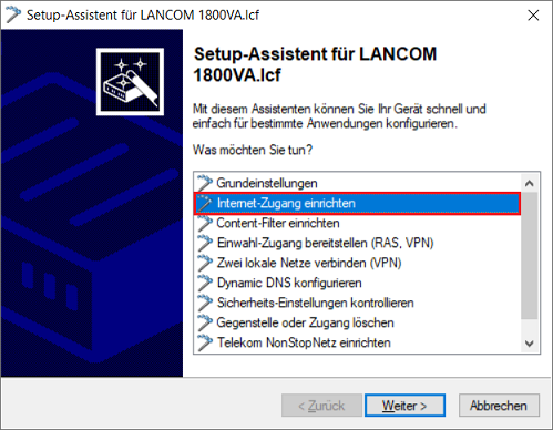 1. Starten Sie den Setup-Assistenten und wählen Sie die Option Internet-Zugang einrichten.