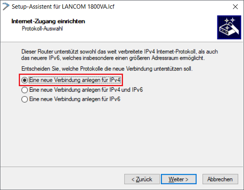 2. In diesem Beispiel soll eine IPv4-Verbindung konfiguriert werden.