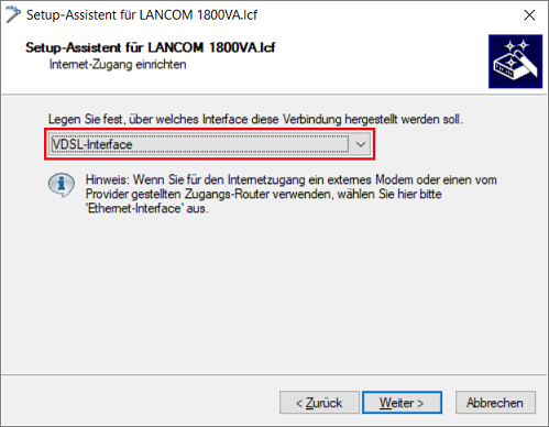 3. Wählen Sie die Einstellung VDSL-Interface zur Nutzung des integrierten VDSL-Modems aus.