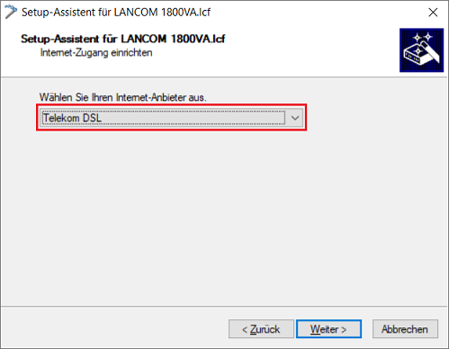 5. Wählen Sie in folgendem Dialog Ihren Internet-Anbieter aus.