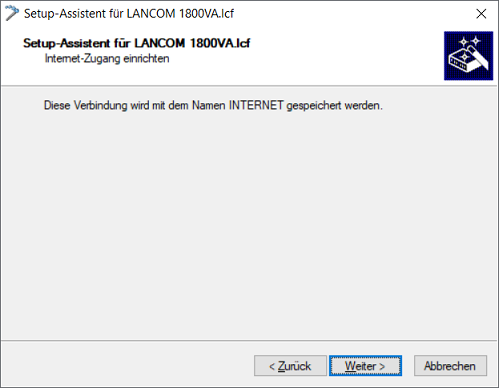 6. Der Name für die erste Internet-Verbindung wird über den Setup-Assistenten immer auf INTERNET gesetzt.