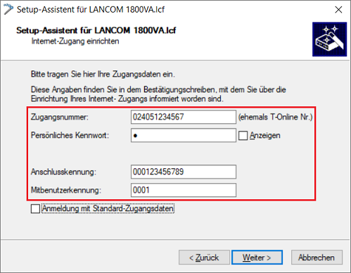 7. Geben Sie in folgendem Dialog die Zugangsdaten ein, welche Sie von Ihrem Provider erhalten haben.