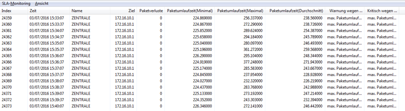 Sie haben zudem die Möglichkeit, sich die Historie der Verbindungsprüfungen anzeigen zu lassen. Klicken Sie dazu mit der rechten Maustaste auf den Eintrag SLA-Monitoring .