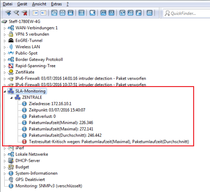 In LANmonitor sind die Ergebnisse der konfigurierten Tests unter SLA-Monitoring ersichtlich.