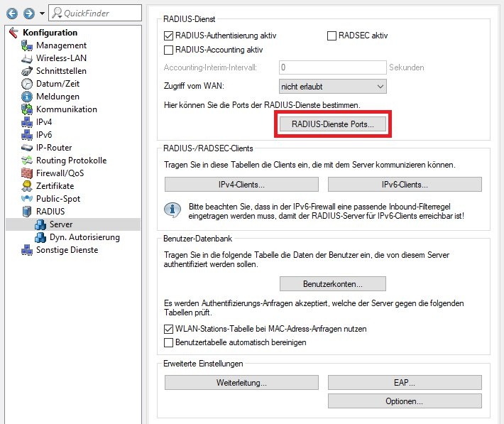 1.2 Wechseln Sie in das Menü RADIUS-Dienste Ports.