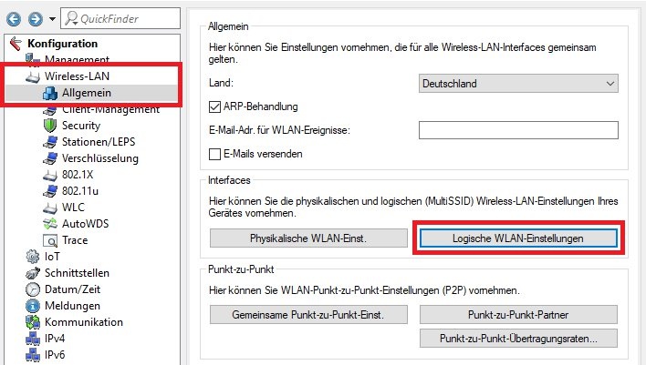 2.5 Wechseln Sie in das Menü Wireless-LAN -> Allgemein -> Logische WLAN-Einstellungen.