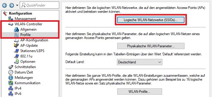 3.3 Wechseln Sie in das Menü WLAN-Controller -> Profile -> Logische WLAN-Netzwerke (SSIDs).