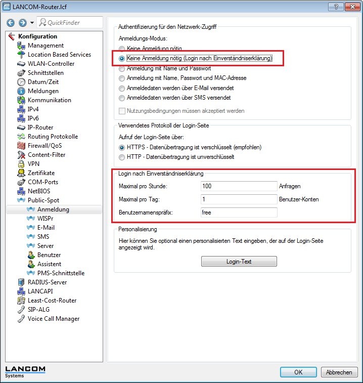 - LANCOM Router oder LANCOM Access Point mit aktivierter LANCOM Public Spot Option