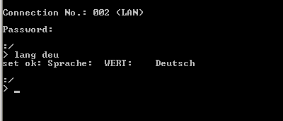 3. Um die Sprache z.B. von Englisch auf Deutsch umzustellen, geben Sie folgenden Befehl an der Eingabeaufforderung ein: